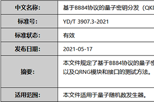 中華人民共和國工業和信息化部批準實施國內首個量子隨機數相關行業標準《基于BB84協議的量子密鑰分發(QKD)用關鍵器件和模塊 第3部分:量子隨機數發生器(QRNG)》,該標準是國內首個量子隨機數相關通信行業標準。中國通信標準化協...
